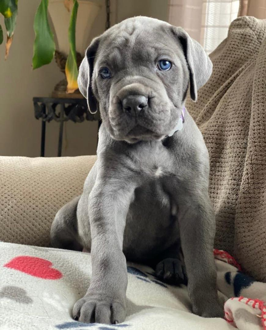 I’m a striking female Cane Corso with a deep slate coat and an unstoppable spirit. Like a true Aries, I’m fearless, loyal, and full of heart. I’m ready to find my forever home where I can protect, play, and love unconditionally. When I’m fully grown, I’m expected to weigh between 160–190 lbs—just like my impressive parents. I’m AKC registered and can’t wait to be the muscle and the heart of your home.
